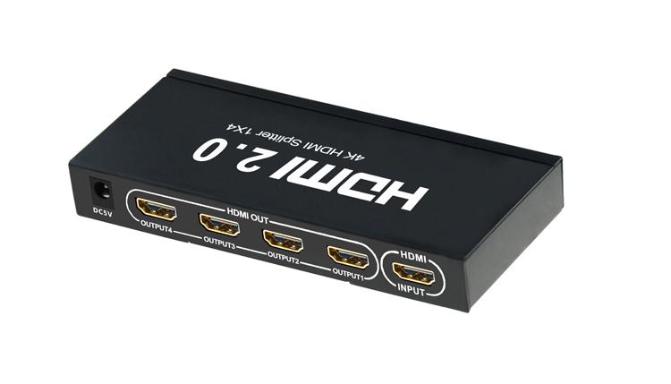 Features: One HDMI 2.0 input signal split to four HDMI 2.0 sink devices Support HDR Support 4K*2K @60Hz resolution Support deep color 24bit, 30bit, 36bit Video Format Support: 4Kx2K/60Hz 10Bit YcbCr4:2:0; 4Kx2K/60Hz 12Bit YcbCr 4:2:0 ; 4Kx2K/60Hz 8Bit YcbCr 4:4:4/ YcbCR4:2:0(Note:It only support the standard HDMI Source YcbCR4:4:4 Signal) Support Blue-Ray 24/50/60fs/HD-DVD/xvYCC Digital audio format, as DTS-HD/Dolby-trueHD/LPCM7.1/DTS/Dolby-AC3/DSD HDMI Input/Output Cable distance can be up to 10m transmit the 1080P signal by using standard AWG24 HDMI Cable HDMI Input/Output Cable distance can be up to 5m transmit the 4Kx2K signal by using standard AWG24 HDMI Cable Support signal retiming No loss of quality Installs in minutes Need DC5V/2A power supply